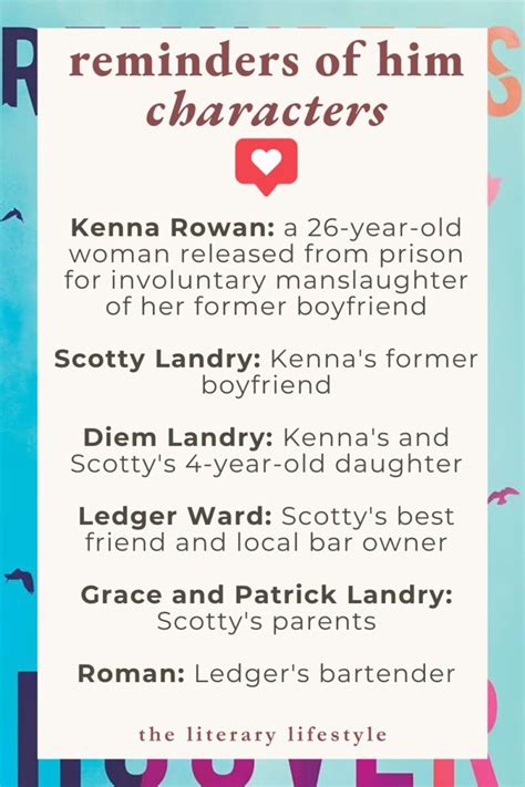 Reminders Of Him Characters Ledger - In his role as diem’s uncle/friend/surrogate father/coach, ledger sacrifices the typical life of a man his age—he cannot commit to a marriage. He is the main father figure to kenna's daughter, diem. In reminders of him by colleen hoover, ledger ward is scotty landry’s best friend and. Ledger ward appears in the standalone, reminders of him. The only person who.