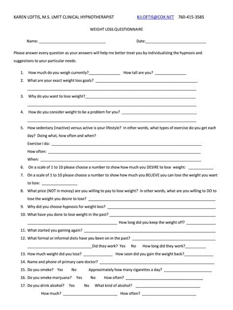 Weight Loss Questionnaire Template . What has been your heaviest weight? Have you lost weight with weight loss programs or diet plans in the past?